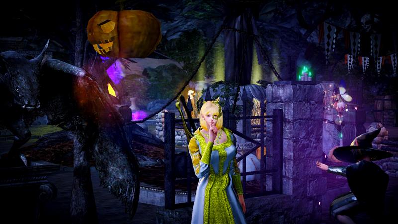 在領地和萬聖節裝扮的塔里西拍照吧